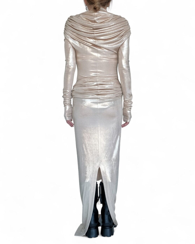 Long Stretch Gold Draping Dress