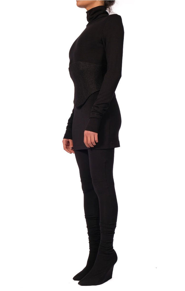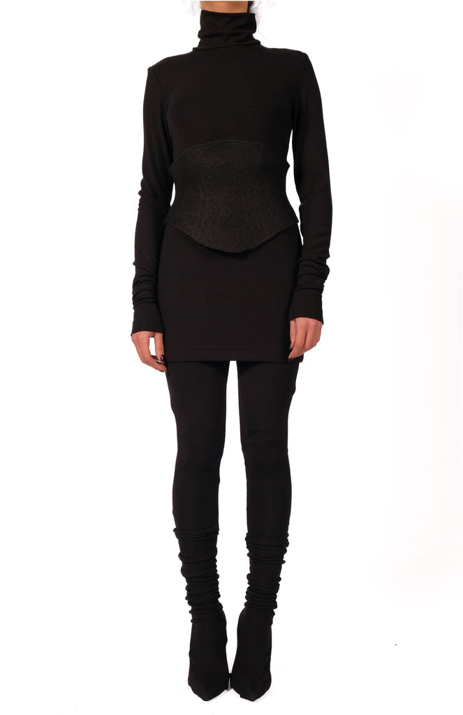 Like her sister, although just crafted from wool, this corset belt fastens in the back with a zipper, created by David’s Road.